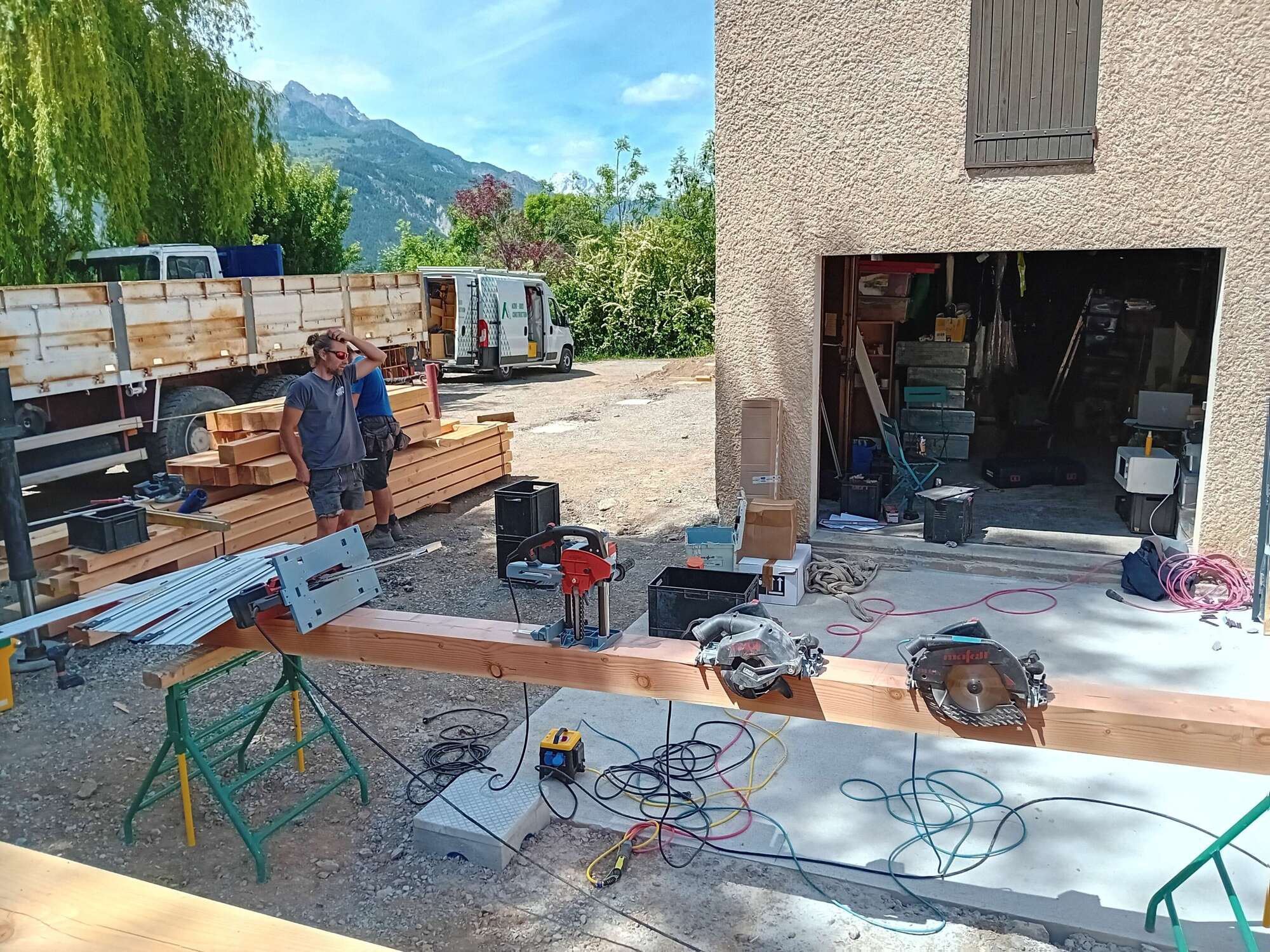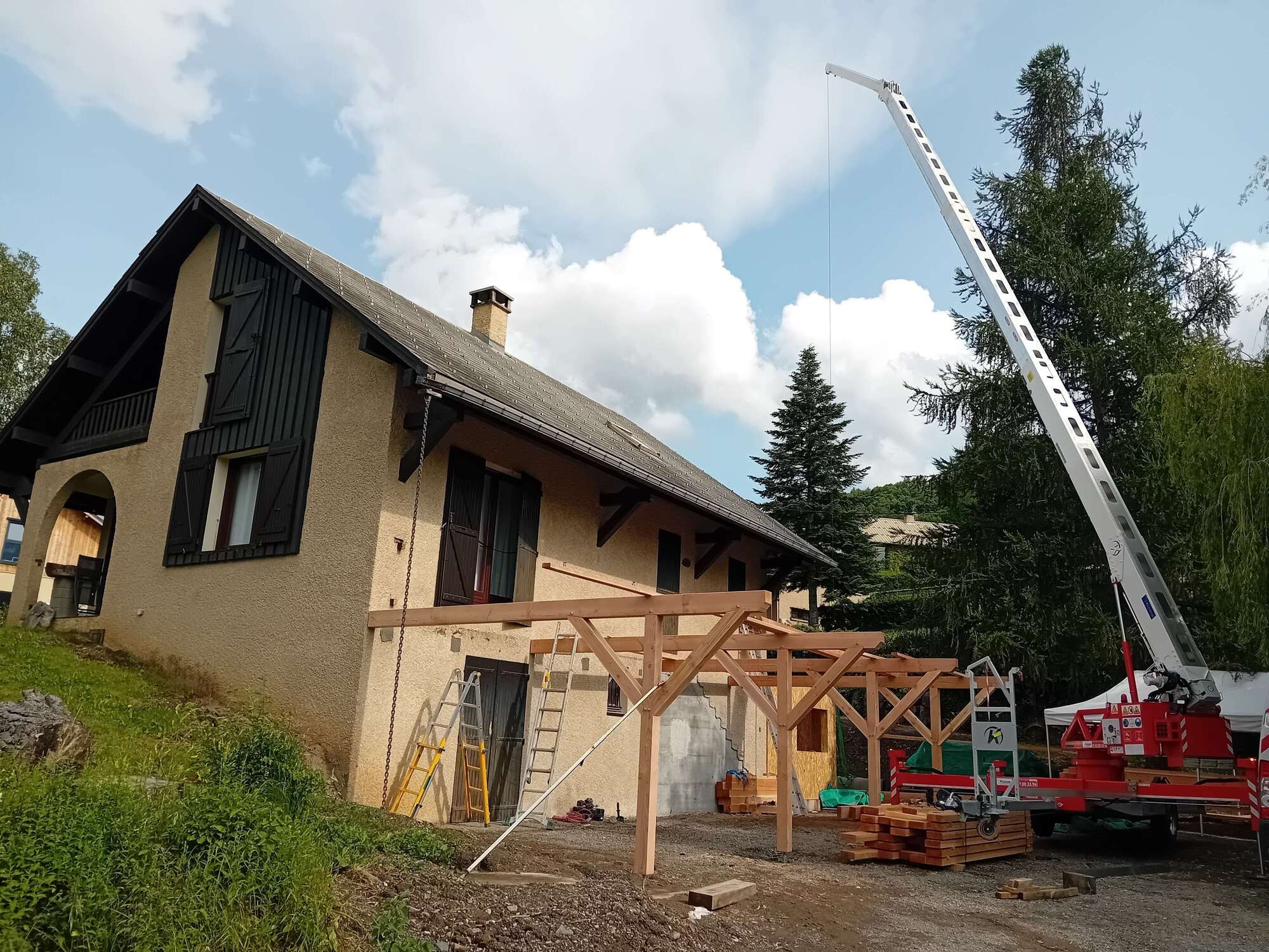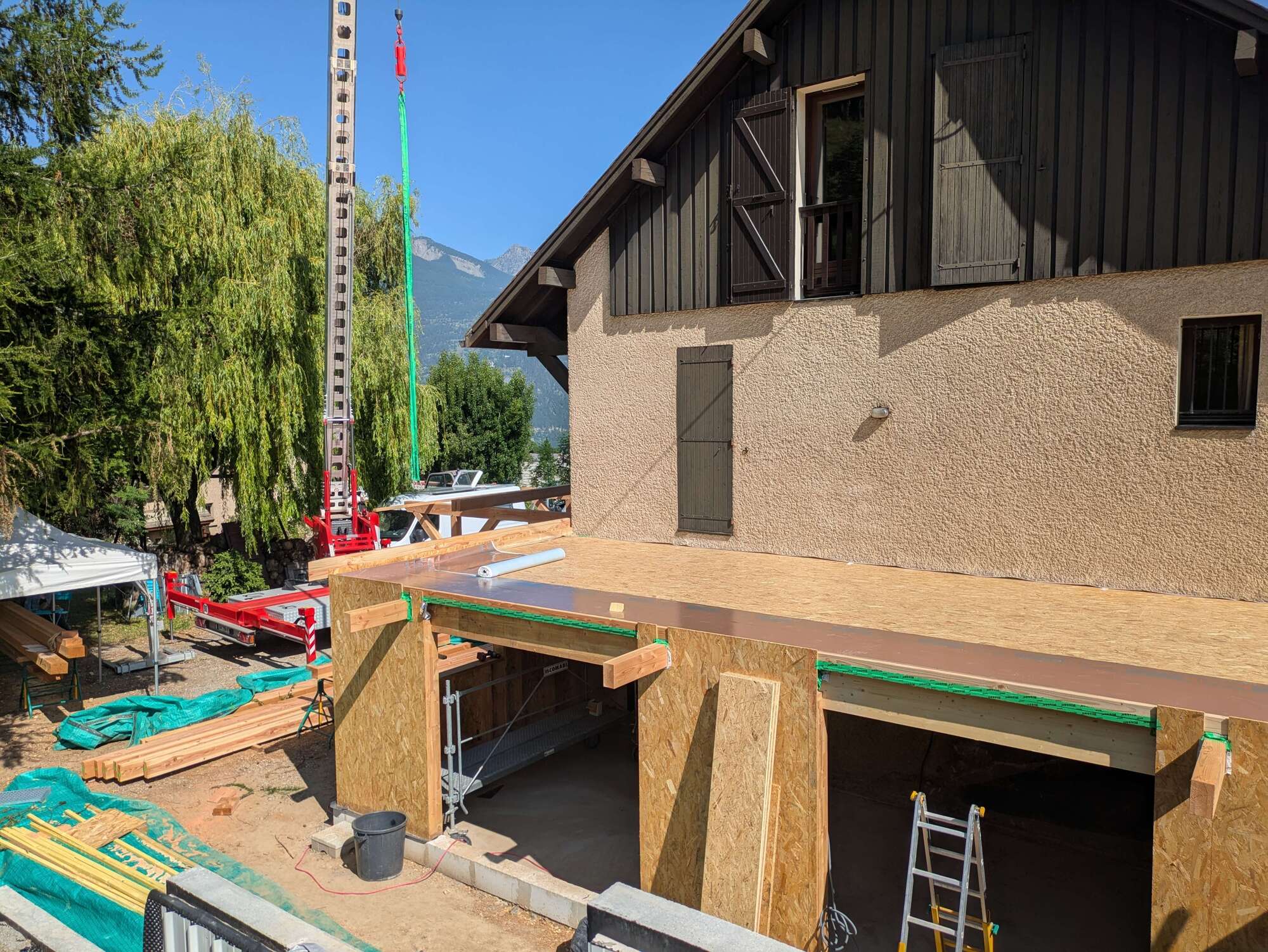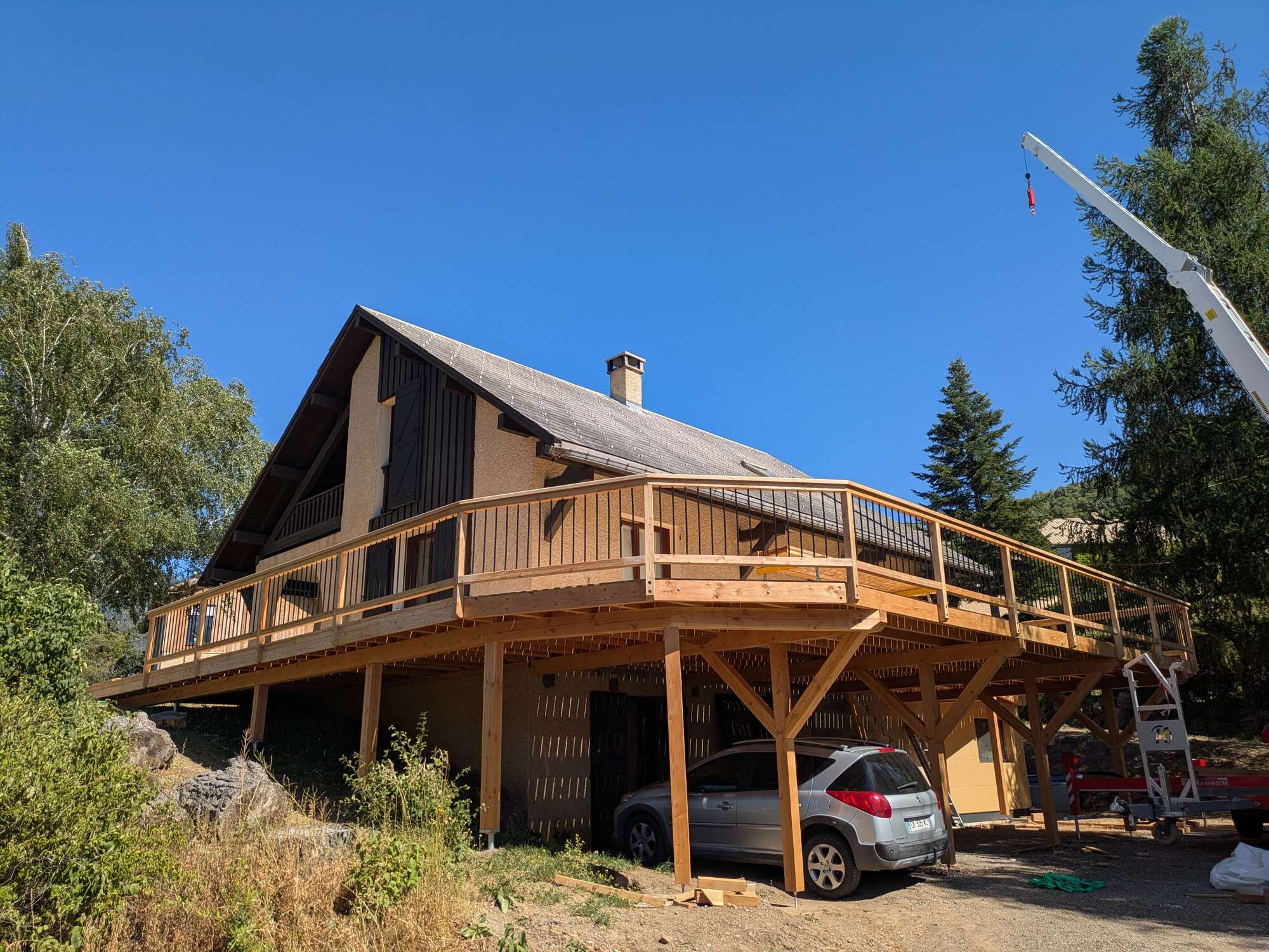 Un très beau chantier de l’été à Risoul! En vue de la rénovation de leur maison, les clients souhaitaient réaliser dans un premier temps une extension en ossature bois, et la création d’une grande terrasse entourant les trois façades arrière.