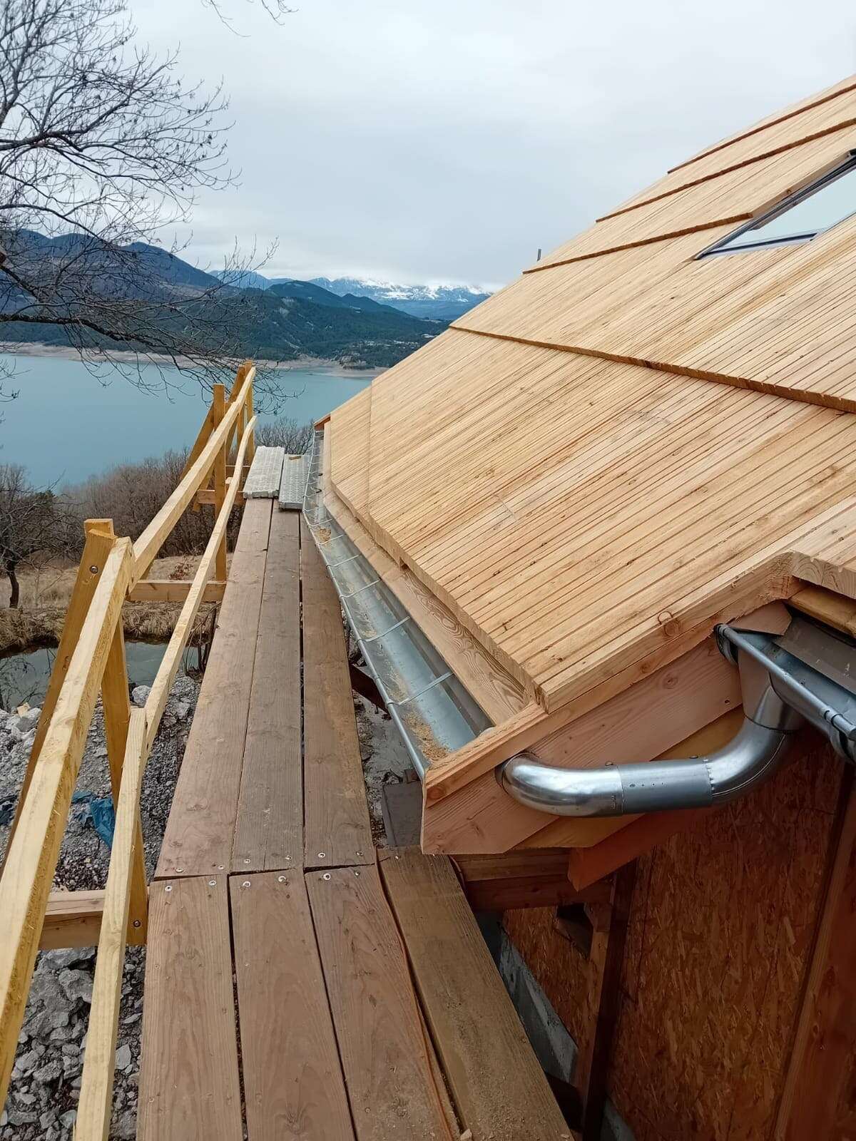 Au programme de ce chantier de printemps, démontage de l’ancienne couverture en bardeaux bitumineux, pose d’un nouveau pare-pluie et couverture neuve en bac ...
