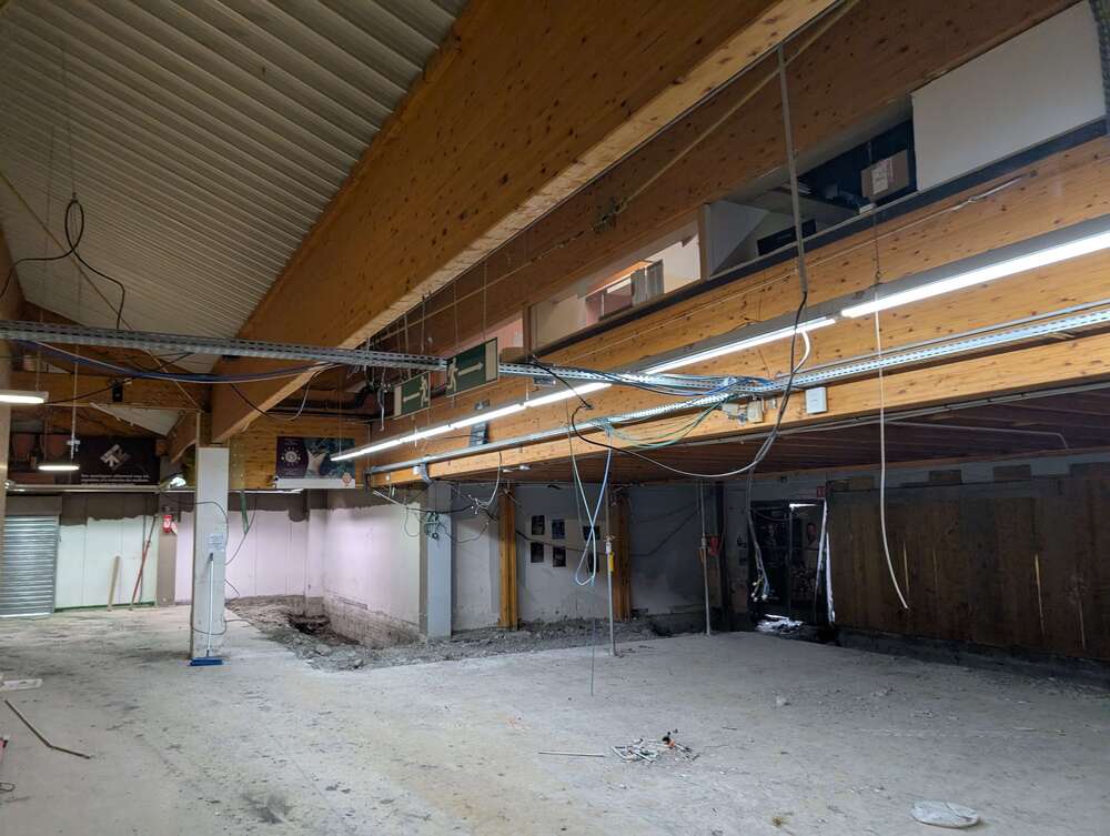 Il s’agissait également de renforcer en sous-oeuvre les imposants lamellés-collés traversant le magasin, en posant des ferrures boulonnées dans les nouveaux murs.