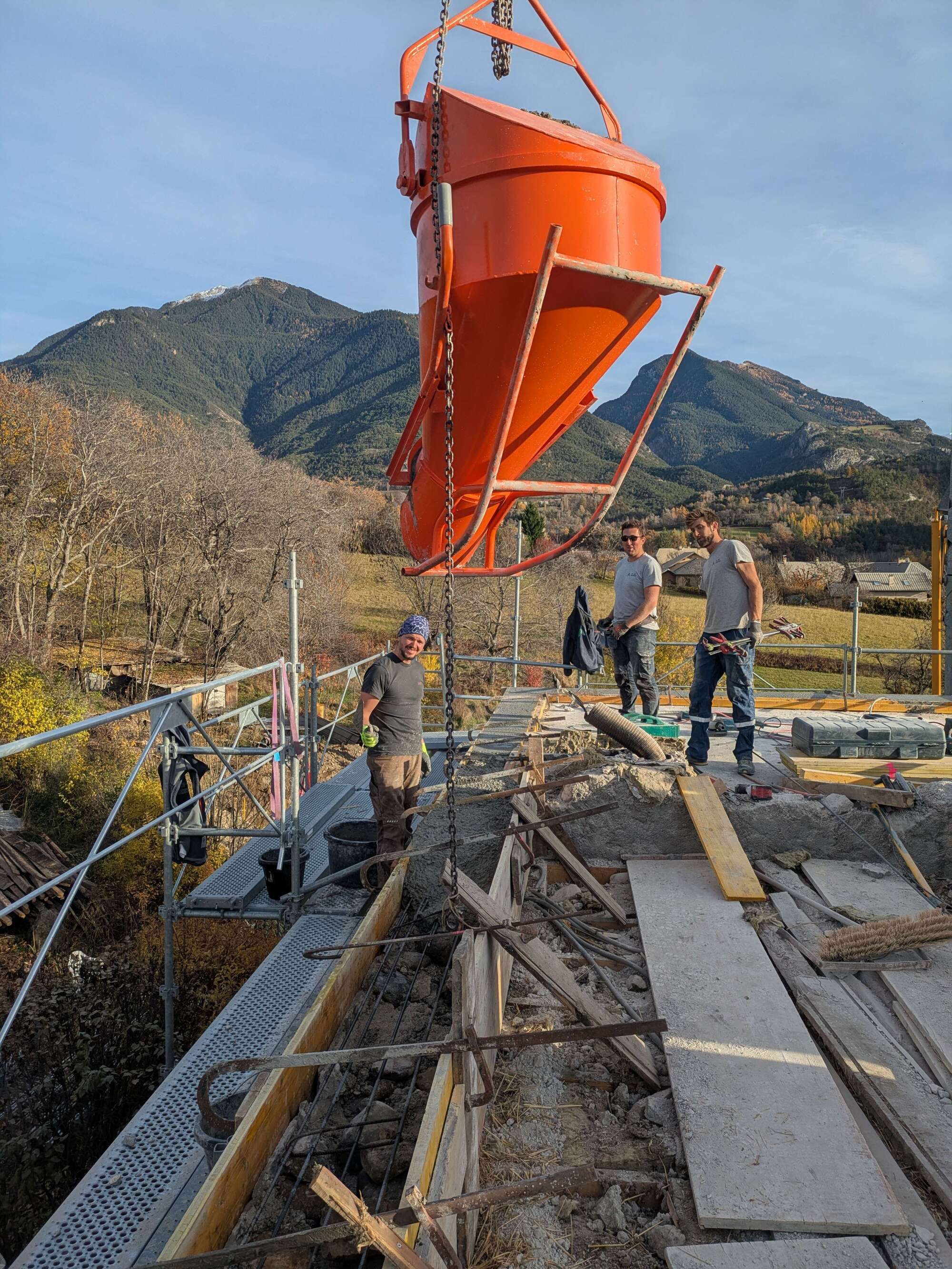 Le mois de décembre a été chargé! L'objectif pour l'équipe était de réaliser le hors d'eau sur une grande maison en rénovation à Guillestre. Ici encore, l'isolation sera réalisée en paille.